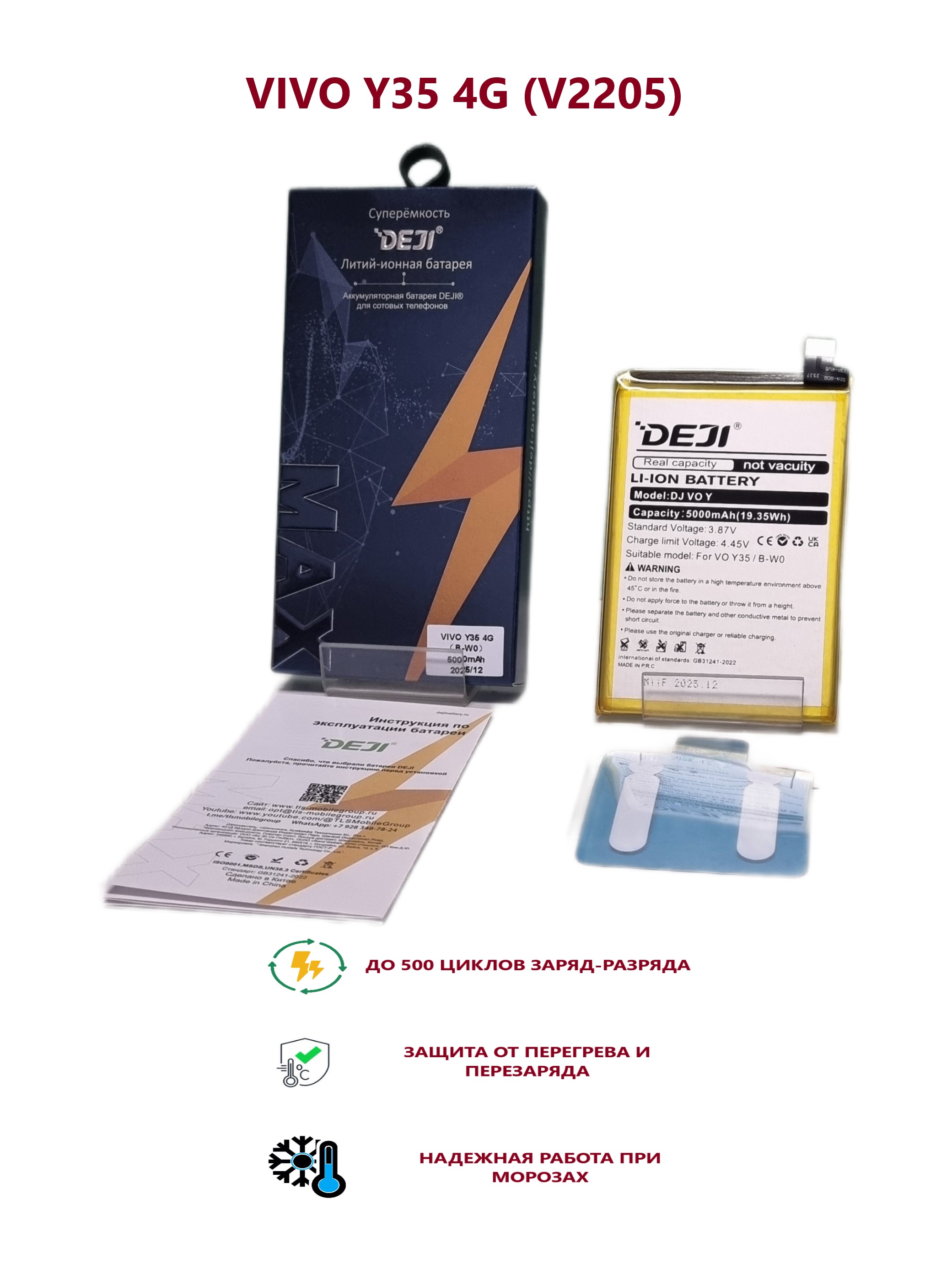 Аккумулятор DEJI для Vivo Y35 4G (V2205) (B-W0) Premium - 5000 mAh