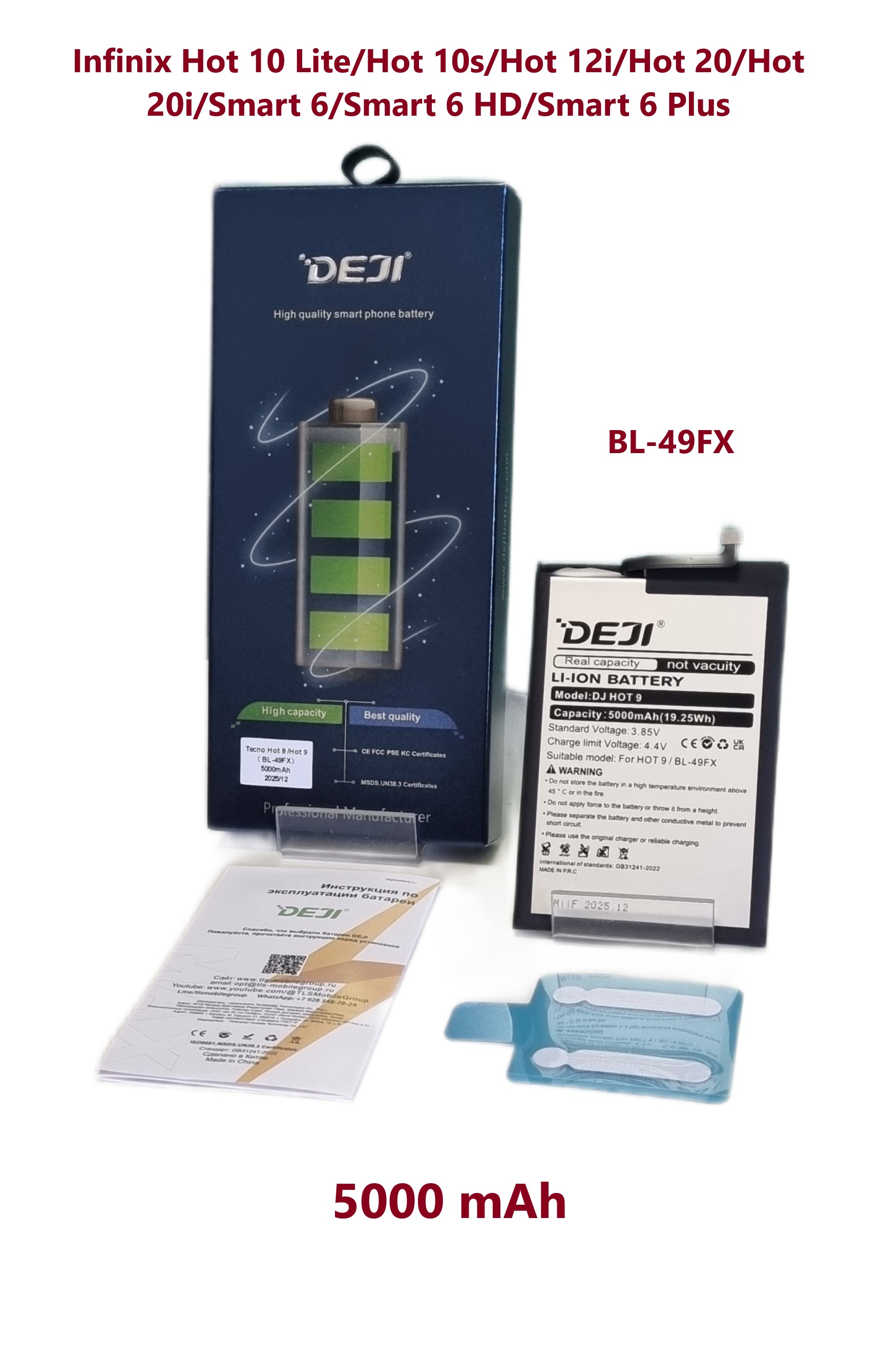 Аккумулятор DEJI для Infinix Hot 10 Lite/Hot 10S/Hot 12i/Hot 20i/Smart 6/Smart 6 HD/Smart 6 Plus (BL-49FX) Premium - 5000mAh