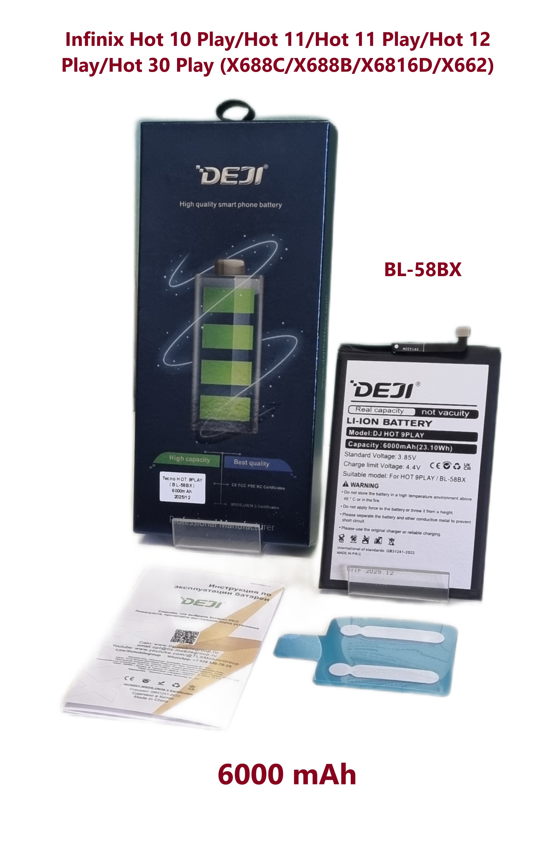 Аккумулятор DEJI для Infinix Hot 10 Play/Hot 11/Hot 11 Play/Hot 12 Play/Hot 20 Play/Hot 30 Play (BL-58BX) Premium - 6000mAh