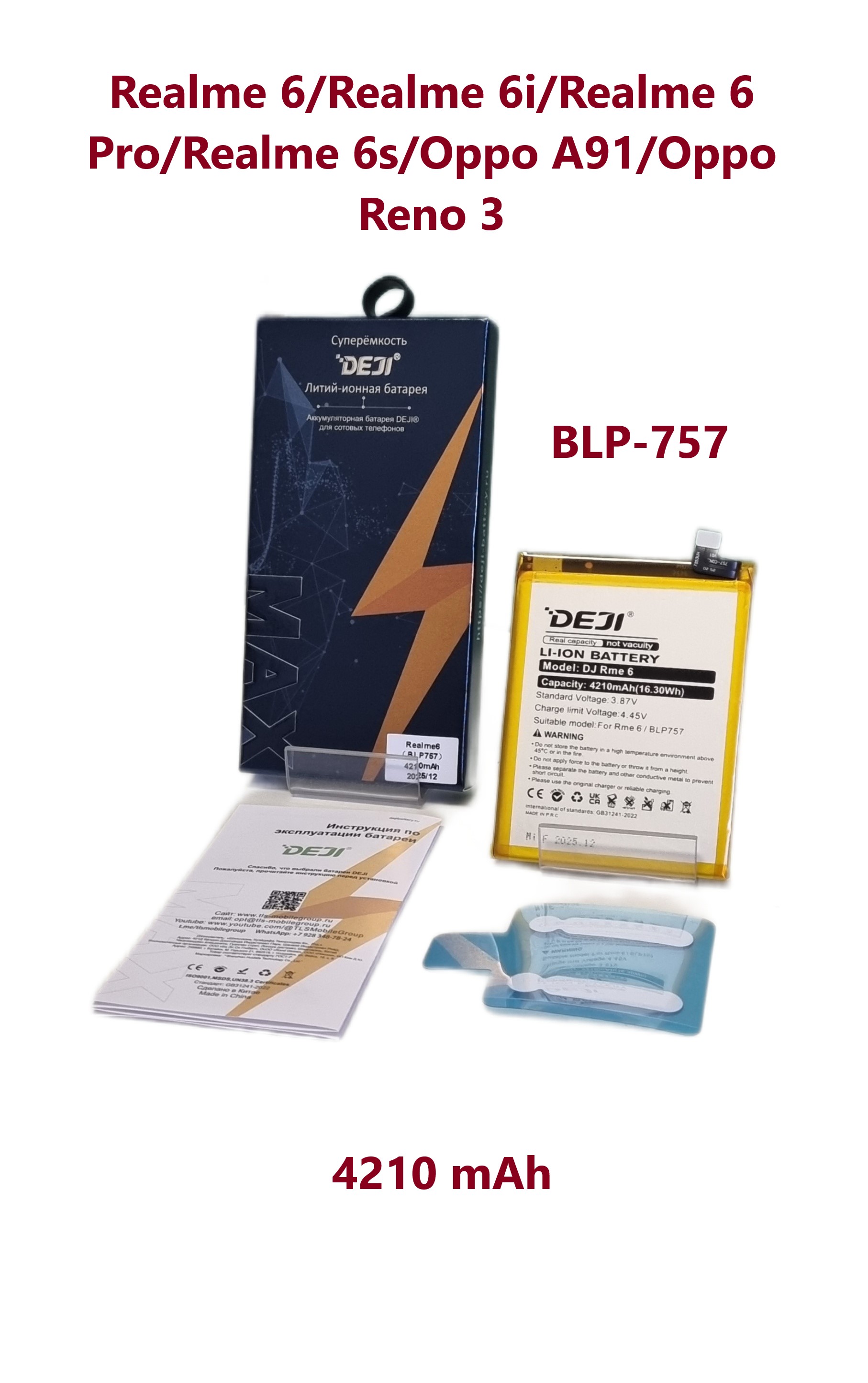 Аккумулятор DEJI для Realme 6/Realme 6 Pro/Realme 6s (BLP757) Premium - 4210 mAh