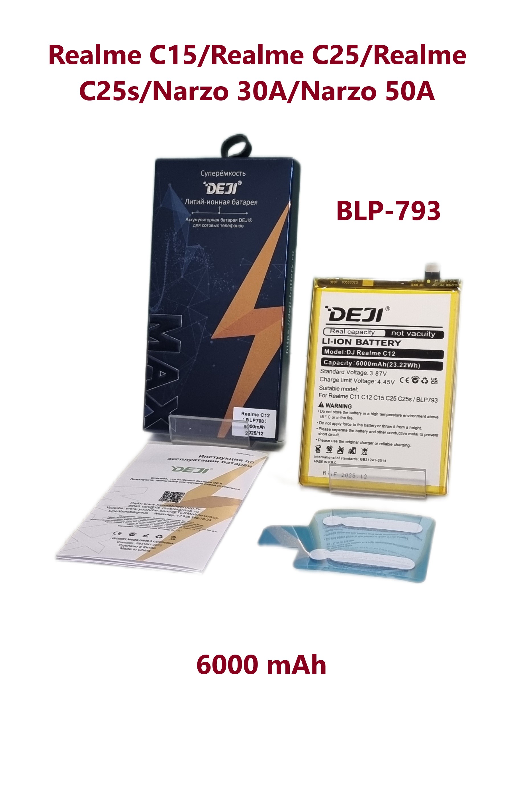 Аккумулятор DEJI для Realme C15/Realme C25/Realme C25s/Narzo 30A/Narzo 50A (BLP793) Premium - 6000mAh